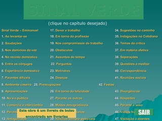 1. O documento apresenta um livro com 50 capítulos que fornecem conselhos e orientações sobre como ter uma vida pacífica e harmoniosa através de atitudes e comportamentos positivos nas relações interpessoais no âmbito doméstico e social.