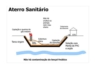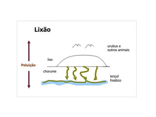 O documento discute os diferentes tipos de resíduos produzidos e as melhores formas de tratá-los e eliminá-los, incluindo reciclagem, compostagem, aterros sanitários, e incineração. Também aborda os riscos enfrentados pelos coletores de lixo e como a população pode ajudá-los.