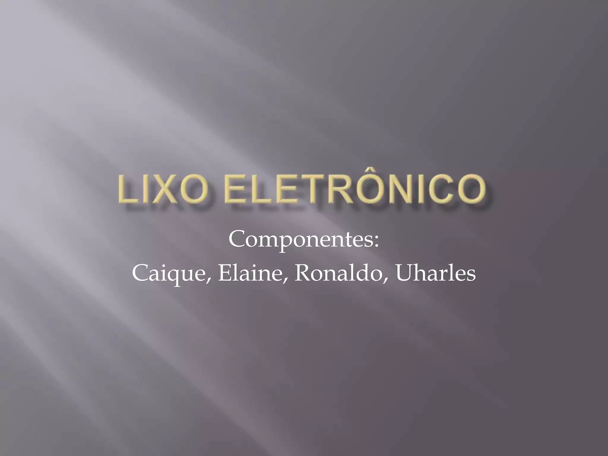 O documento discute os resíduos eletrônicos, que representam 5% do lixo mundial, mencionando que o Brasil produz 2,6kg de lixo eletrônico por habitante. A maioria dos eletrônicos não é reciclada corretamente, liberando substâncias tóxicas que poluem o solo e a água.