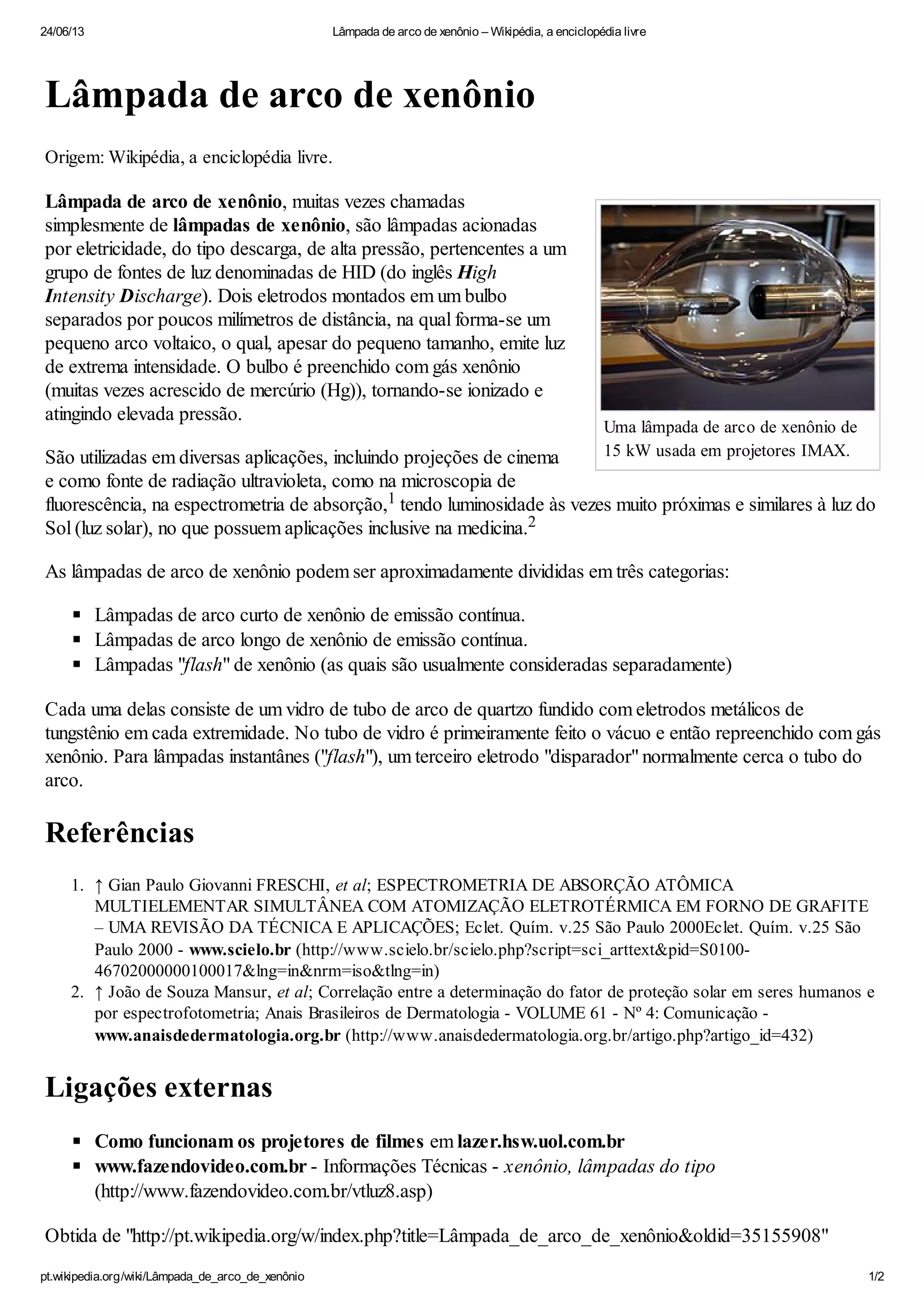 Lâmpadas de arco de xenônio são lâmpadas de alta intensidade usadas em projetores de cinema e outras aplicações que emitem luz muito brilhante através de um arco elétrico entre eletrodos dentro de um bulbo preenchido com gás xenônio. Elas podem ser divididas em três categorias com base no tamanho do arco e emissão contínua ou intermitente da luz. São usadas para projeção, microscopia de fluorescência e espectrometria por sua luminosidade semelhante à