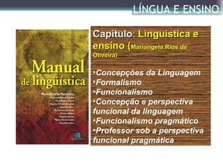 Este documento discute concepções da linguagem e do ensino de língua, abordando perspectivas formalistas, funcionalistas e pragmáticas. Também analisa como políticas de fechamento podem silenciar certas leituras e produções de texto na escola.