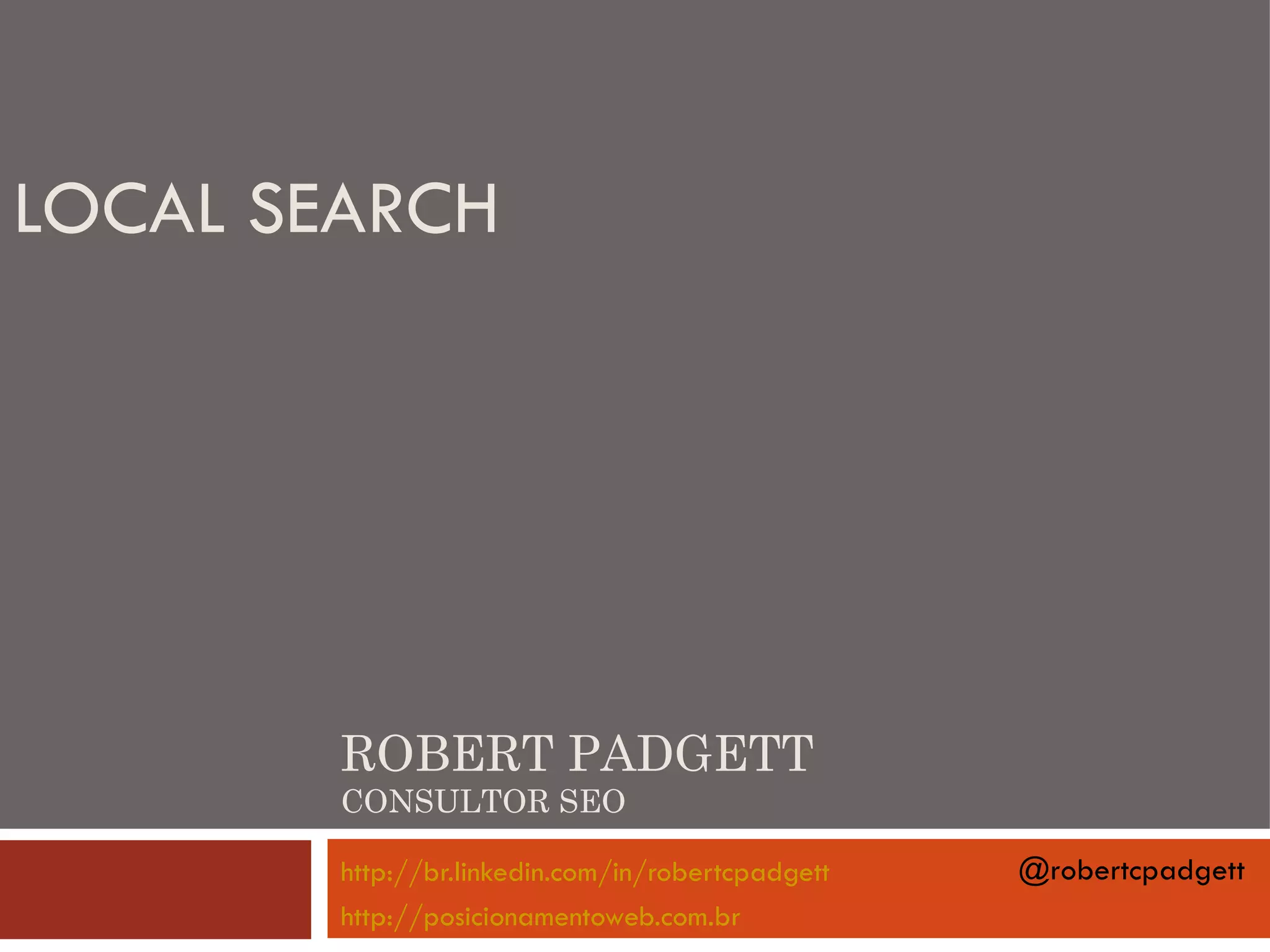 O documento aborda a importância da busca local, destacando que 20% das pesquisas no Google são relacionadas à localização e a crescente influência dos smartphones. Também menciona práticas recomendadas para otimização de ficha em serviços como Google Places e Google Plus, além de erros a serem evitados. Por fim, discute a integração de dados e a necessidade de uma presença online consistente para negócios locais.