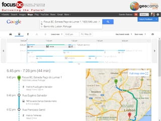 O documento discute as tendências de localização e serviços baseados em localização em dispositivos móveis. Aponta que até o final de 2011, 75% dos dispositivos enviados para mercados maduros terão GPS. Também discute o potencial de fornecer informações personalizadas aos usuários com base em sua localização por meio de serviços móveis.