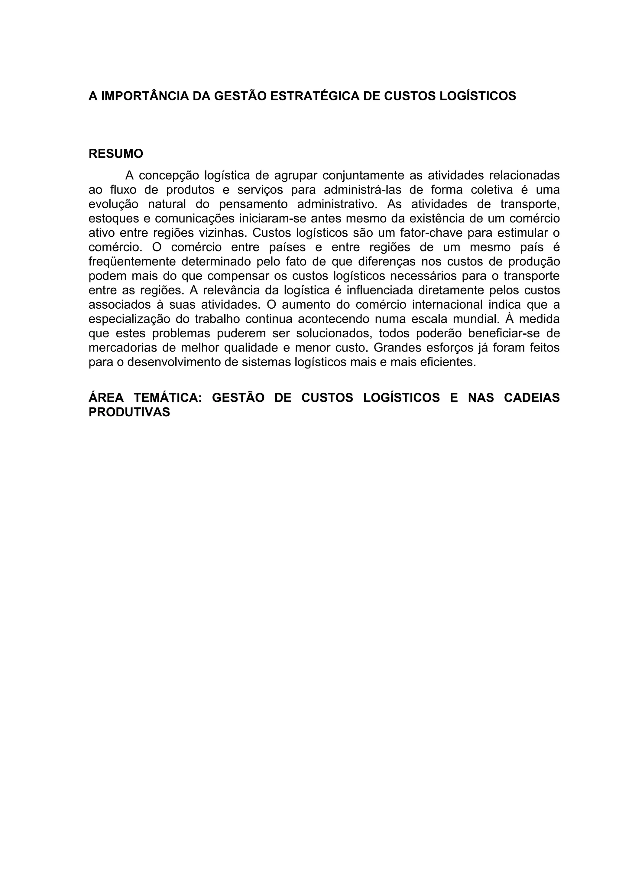 1) A gestão estratégica de custos logísticos é importante para estimular o comércio entre regiões e países.