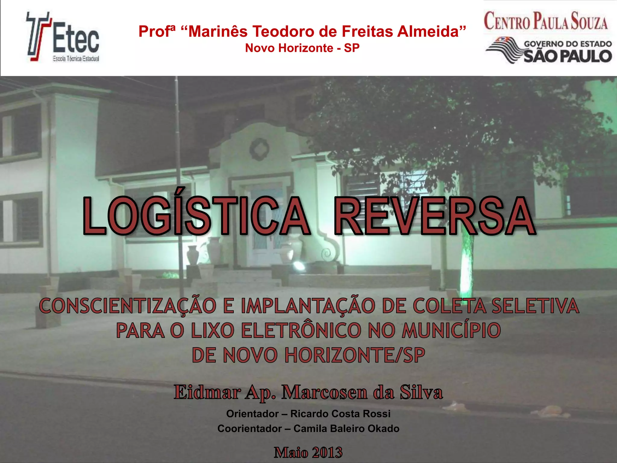1) O documento discute o problema do lixo eletrônico no município de Novo Horizonte e propõe soluções como a logística reversa e campanhas de conscientização.