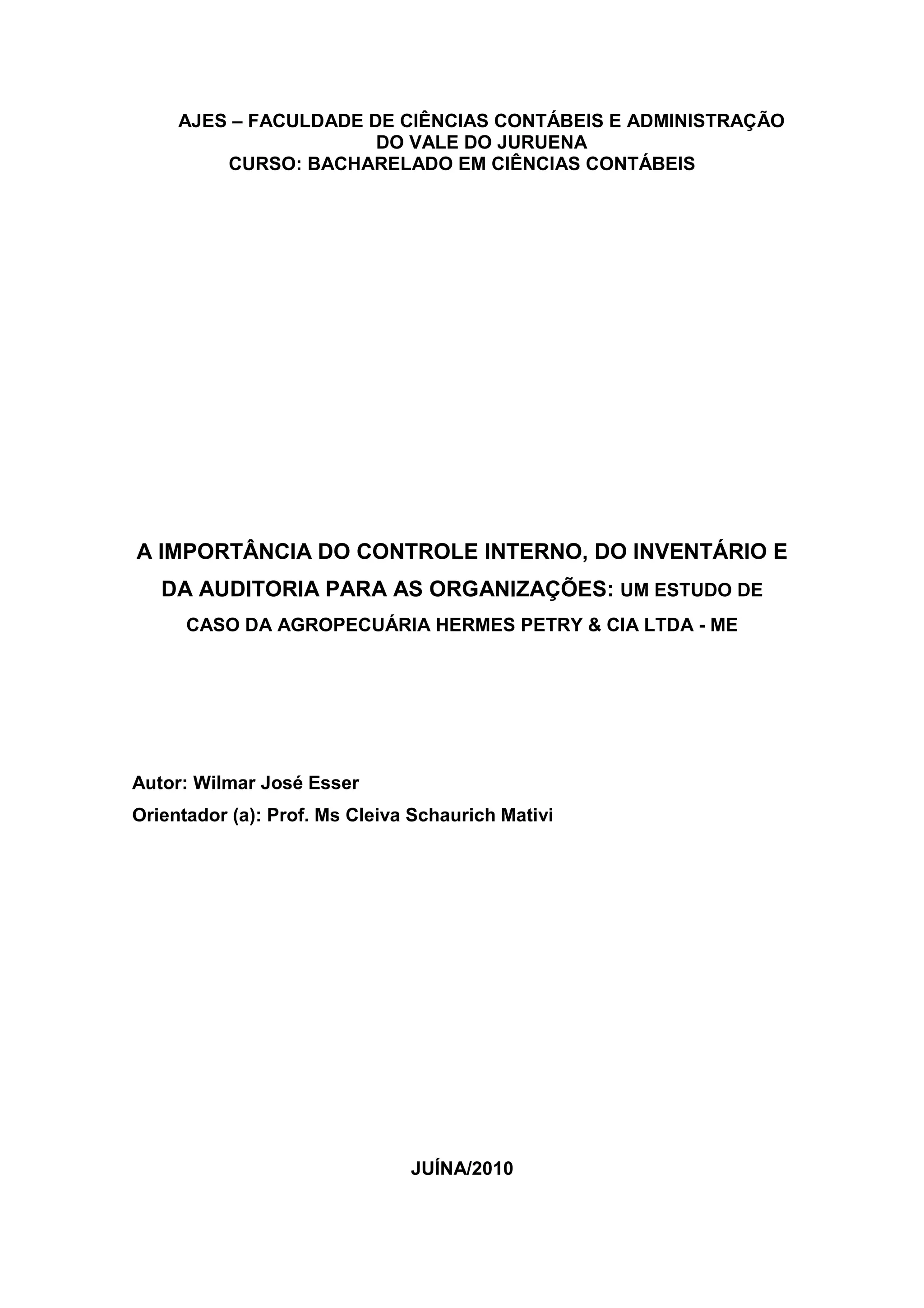 Este trabalho apresenta um estudo de caso sobre a importância do controle interno, inventário e auditoria para uma empresa agropecuária. Aborda os conceitos teóricos destes temas e analisa os processos adotados nesta empresa, identificando pontos fortes e fracos. O objetivo é demonstrar como estas ferramentas podem contribuir para a salvaguarda dos ativos da organização.