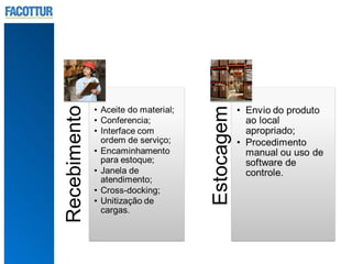 A logística empresarial moderna foca na gestão eficiente das informações de demanda e oferta para atender às necessidades do mercado a um custo adequado. O conceito de Just in Time (JIT), desenvolvido pela Toyota, visa melhorar a produção através da eliminação de atividades redundantes e redução de custos. A movimentação e armazenagem dos produtos é essencial para fornecer valor ao consumidor, integrando diferentes modalidades de transporte no processo logístico.
