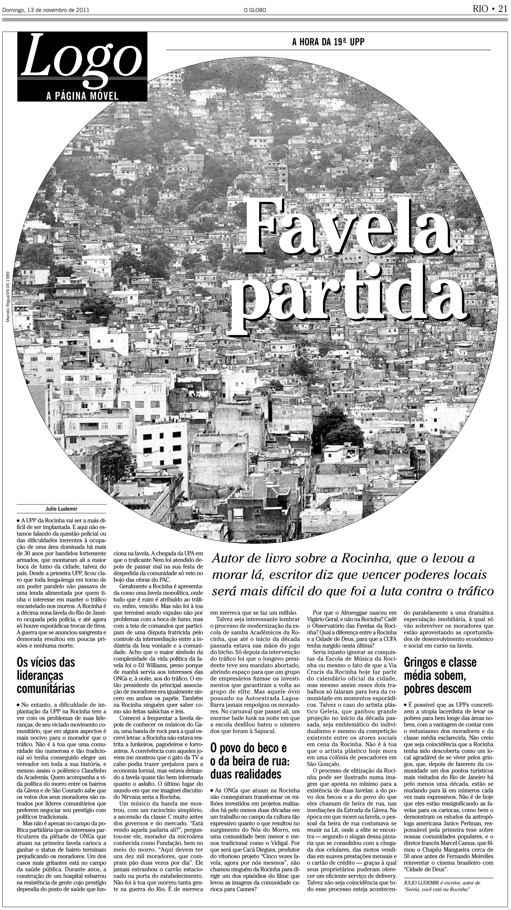 1) A UPP da Rocinha será a mais difícil de ser implantada devido aos problemas com as lideranças comunitárias, que às vezes prejudicam mais os moradores do que o tráfico.