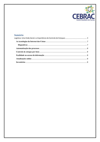 O documento discute como as tecnologias da Internet das Coisas podem melhorar os processos logísticos e de controle de estoque através da automação, monitoramento em tempo real e facilitação do acesso à informação. É explicado que dispositivos conectados, redes de comunicação e sistemas de controle permitem o rastreamento de mercadorias, inventários precisos, detecção precoce de problemas e tomadas de decisão baseadas em dados. O controle de estoque por item e atualizações online em tempo real também são benefícios destacados das no