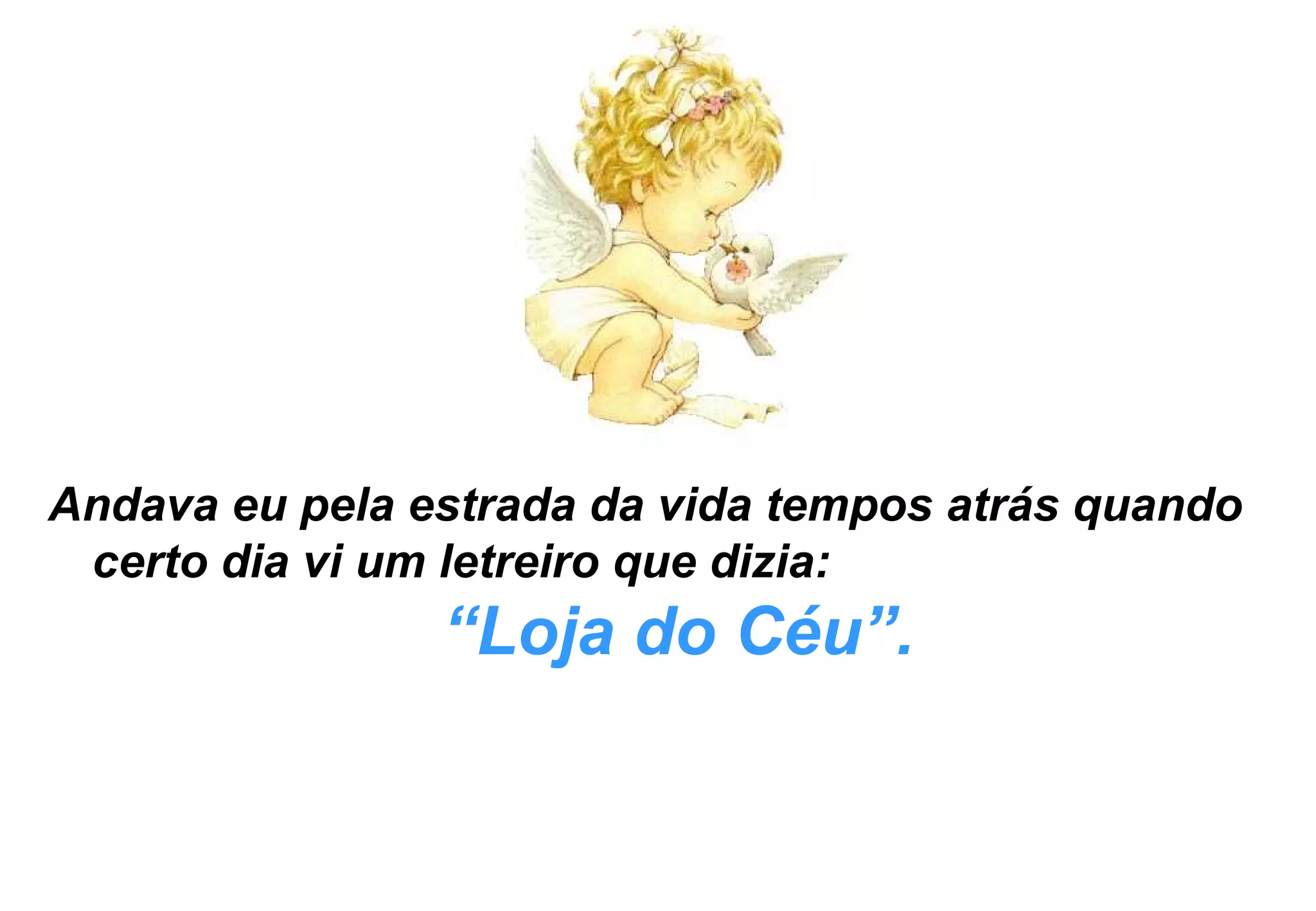 O narrador visita uma "Loja do Céu" onde encontra anjos e pode comprar virtudes como paciência, amor, compreensão, sabedoria, fé, espírito santo, força e coragem para sua jornada. Ele também compra graça, bênção, salvação, oração, paz, felicidade e alegria. Ao chegar ao caixa, descobre que Jesus já havia pago por tudo há muito tempo.