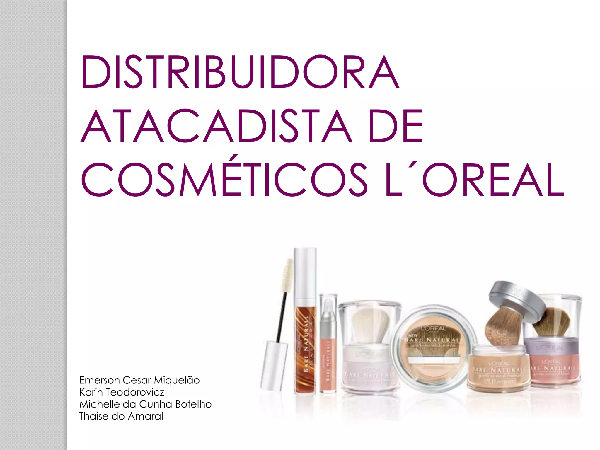 O documento descreve o projeto de abertura de uma distribuidora atacadista de cosméticos da L'Oréal em Curitiba, com detalhes sobre: 1) a história da L'Oréal no Brasil; 2) objetivos, metas e partes interessadas do projeto; 3) análise de viabilidade técnica e econômica considerando três cenários.