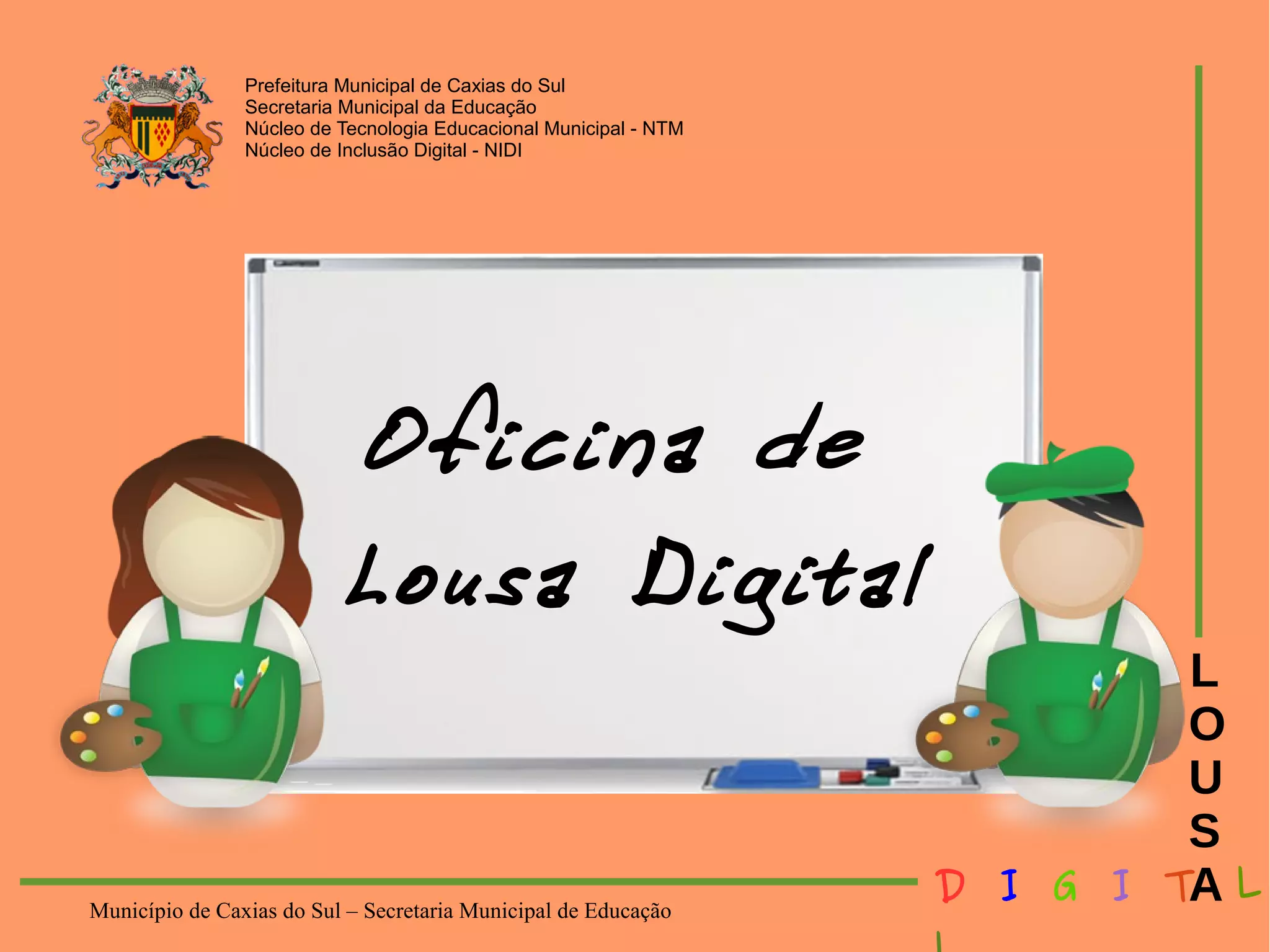 O documento apresenta uma oficina sobre o uso de lousas digitais nas escolas, com o objetivo de capacitar professores. A oficina aborda tópicos como a instalação e exploração da lousa digital, estratégias pedagógicas de utilização e o compartilhamento do conhecimento adquirido com outras escolas.