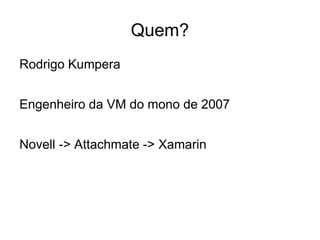 O documento discute como o C# pode ser usado em mais lugares do que apenas no Windows, graças a implementações alternativas como o Mono. O autor argumenta que o C# não precisa depender da Microsoft para inovar e pode ser usado em várias plataformas, como resultado do trabalho da comunidade de código aberto.