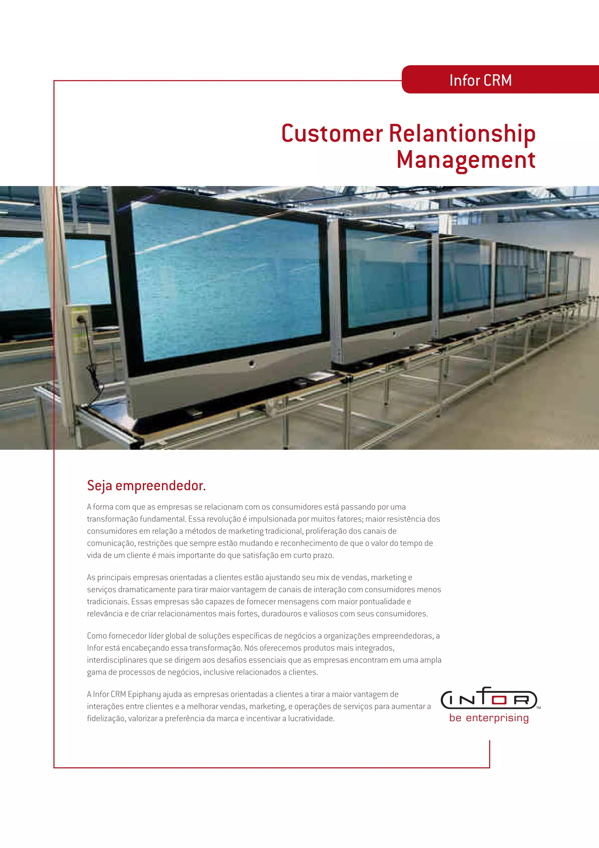 Ü As soluções da Infor CRM ajudam empresas de diversos setores como comunicações, serviços financeiros, varejo, hospitalidade e manufatura a obterem melhores
