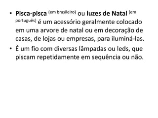 Pisca-pisca são acessórios de luz que piscam em sequência e são usados para decorar árvores de Natal e casas durante as festas de fim de ano. Eles contêm lâmpadas ou LEDs em um fio que pisca repetidamente.