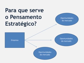 O documento discute os componentes do planejamento estratégico em marketing. Estes incluem: 1) Visão, missão e definição do negócio; 2) Fatores críticos de sucesso e análise de cenários; 3) Identificação de oportunidades de mercado; 4) Objetivos, estratégias e plano de ação; 5) Implementação e avaliações; 6) Feedback e controle.