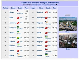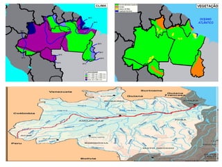 A Amazônia é a maior e menos desenvolvida região do Brasil, com clima equatorial, pouca população e indústria, mas grande presença de rios e biodiversidade. Sua população original era de indígenas, e hoje é a região com mais indígenas do país, apesar da chegada dos colonizadores portugueses que escravizaram muitos. A bacia amazônica é a maior do mundo e fonte de energia hidrelétrica, enquanto a Zona Franca de Manaus promove o desenvolvimento econômico