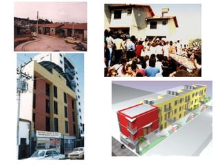 O documento discute os desafios históricos relacionados à moradia e urbanização no Brasil. Apresenta as características comuns das áreas de moradia da população mais pobre, como alta densidade populacional, problemas de saúde e educação. Também descreve exemplos atuais de assentamentos precários e ocupações irregulares. Aborda os direitos à moradia e à cidade como uma luta de longa data no país.