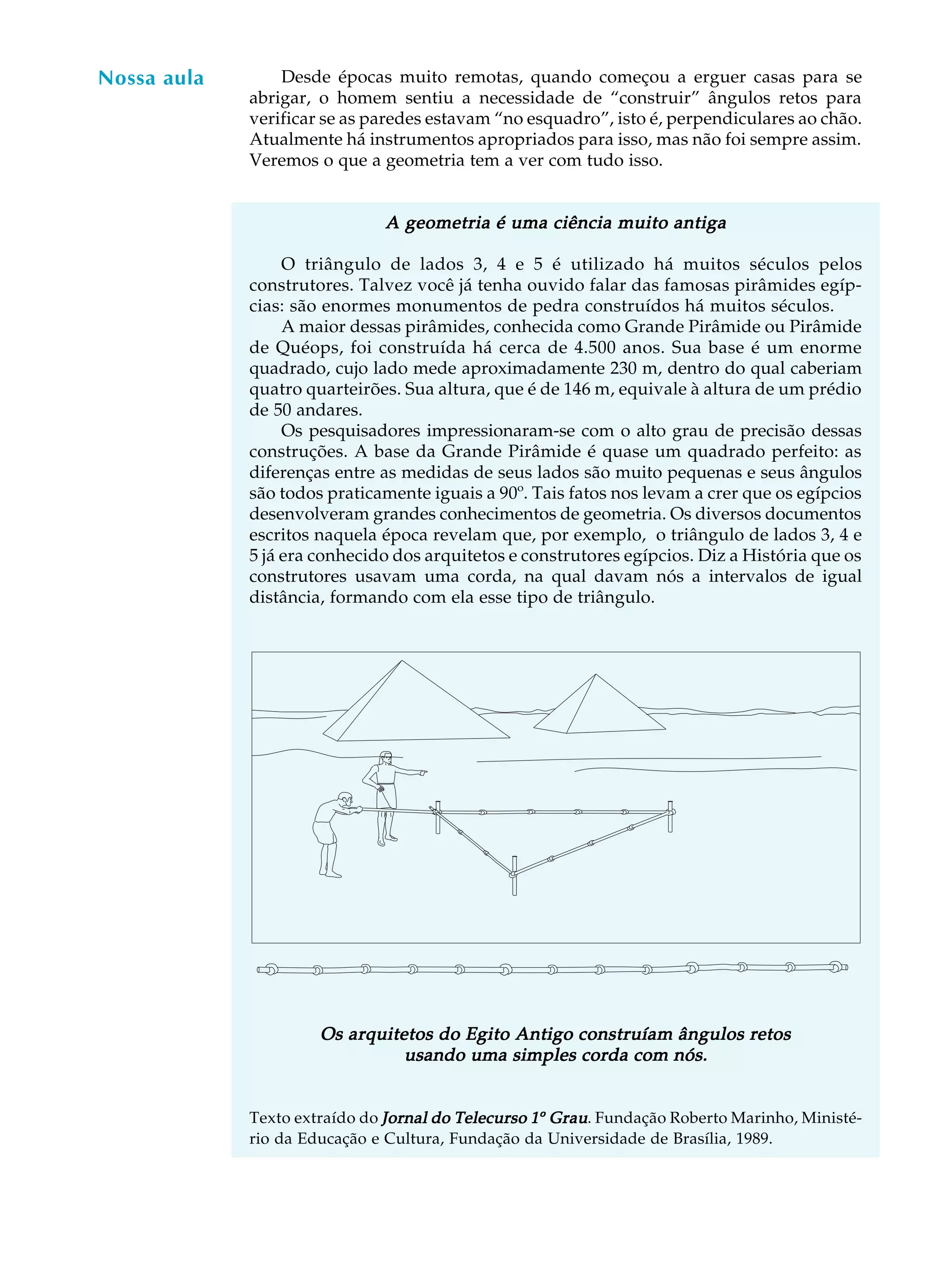 O documento apresenta o Teorema de Pitágoras e sua demonstração histórica. (1) Os egípcios já usavam o triângulo retângulo 3-4-5 na construção. (2) Pitágoras demonstrou que a soma dos quadrados dos catetos é igual ao quadrado da hipotenusa para qualquer triângulo retângulo. (3) A demonstração envolve recortar triângulos e quadrados para mostrar a igualdade.