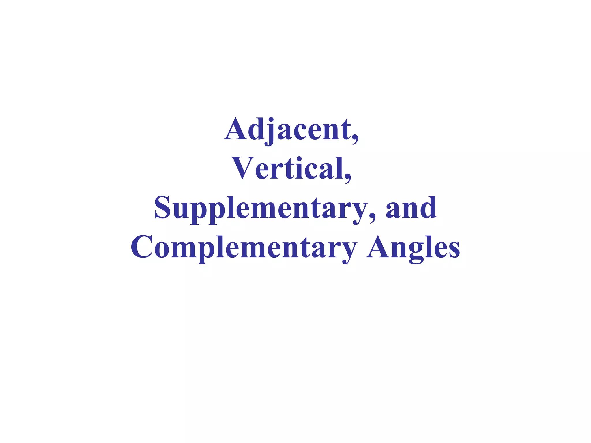 O documento descreve diferentes tipos de ângulos adjacentes, verticais, suplementares e complementares. Ângulos adjacentes compartilham um raio comum. Ângulos verticais são opostos um ao outro. Ângulos suplementares somam 180° e ângulos complementares somam 90°. Exemplos demonstram como identificar cada tipo de ângulo e praticar determinando ângulos faltantes.