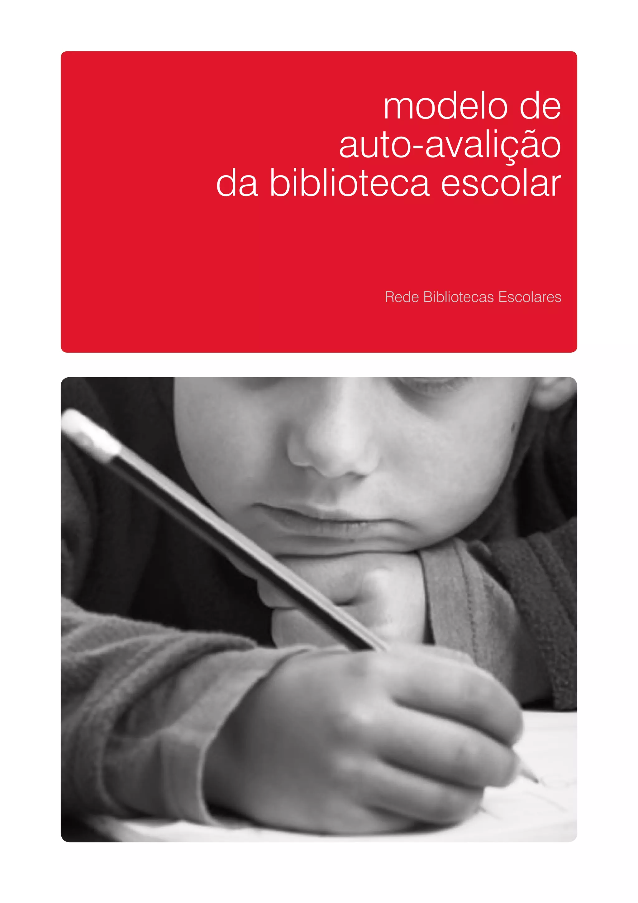 Este documento apresenta um modelo de auto-avaliação para bibliotecas escolares portuguesas com o objetivo de avaliar a qualidade e eficácia das bibliotecas. O modelo inclui quatro domínios a serem avaliados: apoio ao desenvolvimento curricular, leitura e literacia, projetos e atividades, e gestão. Para cada domínio, há indicadores e fatores críticos de sucesso para coletar evidências por meio de instrumentos sugeridos. Os resultados serão analisados considerando perfis de desempenho para