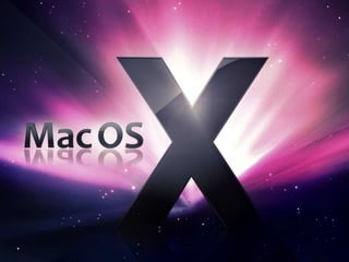 O documento descreve a história e arquitetura do sistema operacional Mac OS. Começa com o surgimento do Mac OS em 1984 e sua popularização de interfaces gráficas. Detalha as principais versões lançadas desde o System 1 até o OS X Mountain Lion de 2012. Explica também a arquitetura do Mac OS, incluindo seus componentes como o Darwin, XNU e sistemas de arquivos.