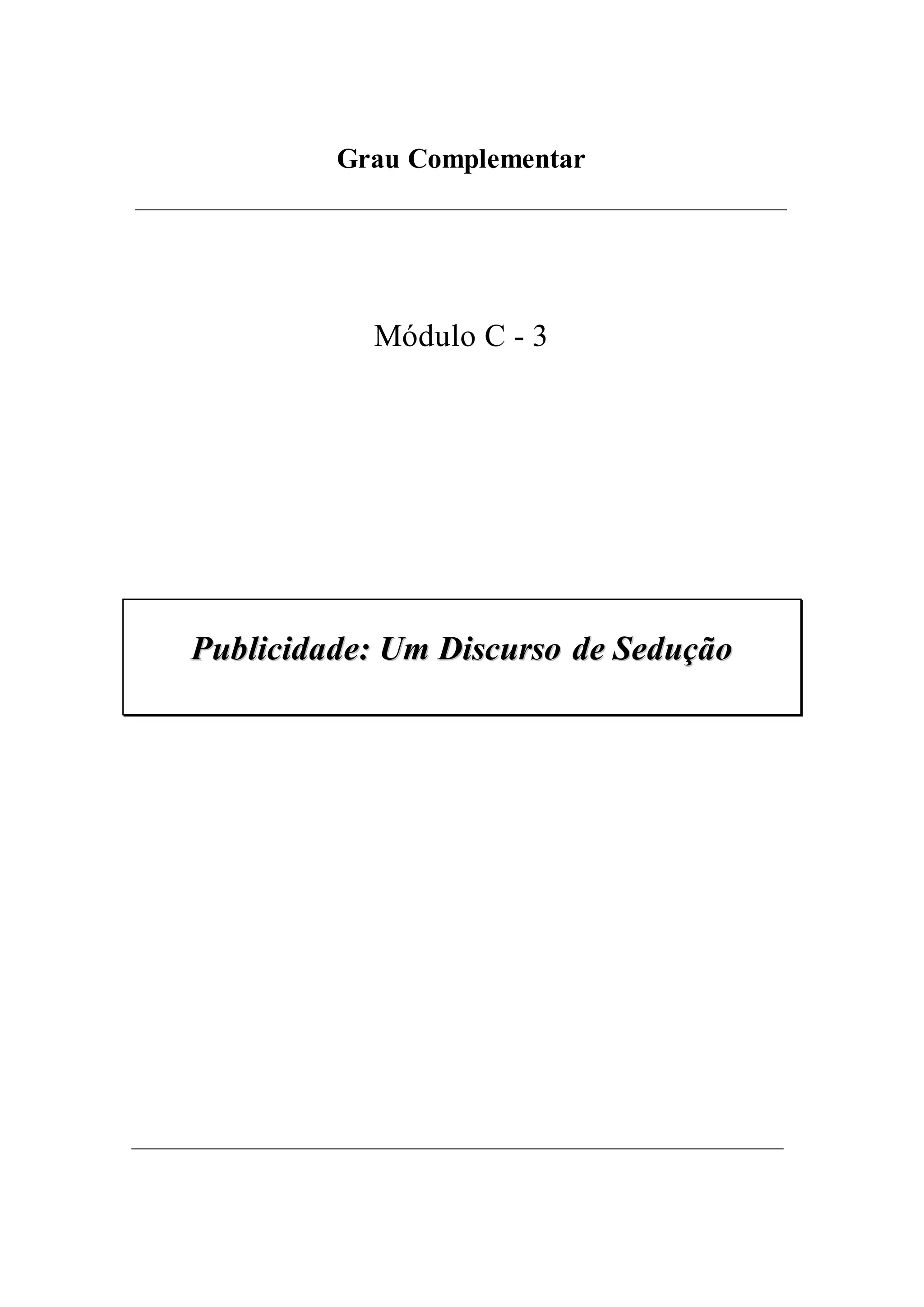 Este documento descreve um módulo de formação sobre publicidade. O módulo visa ensinar os alunos a identificar e analisar criticamente os mecanismos de sedução usados na publicidade para influenciar o consumidor e promover uma sociedade de consumo. O módulo inclui discussões sobre a função da publicidade no sistema econômico, análise de anúncios publicitários, e um projeto final onde os alunos criam sua própria campanha publicitária positiva.