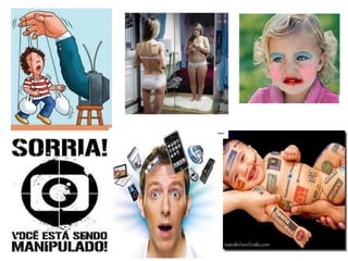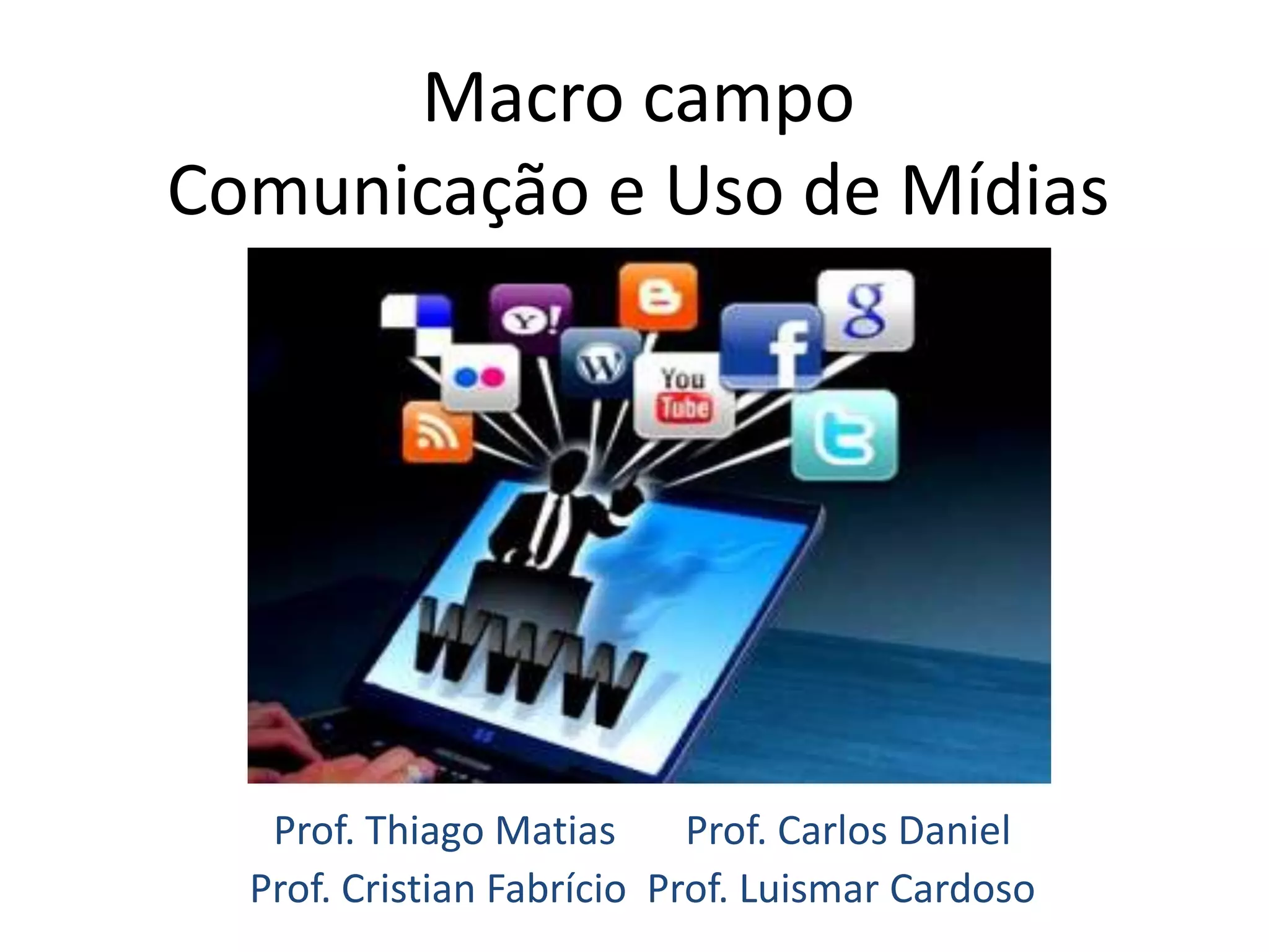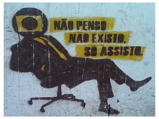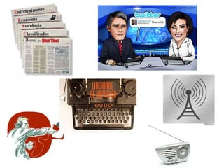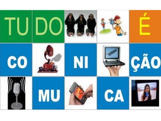 O documento discute vários tópicos relacionados a comunicação e mídias, incluindo: 1) As mídias são canais usados para transmitir mensagens a um grande número de pessoas; 2) As mídias modernas são mais do que veículos de comunicação e transformam a sociedade; 3) Exemplos das mídias mais conhecidas como jornal, rádio e televisão.