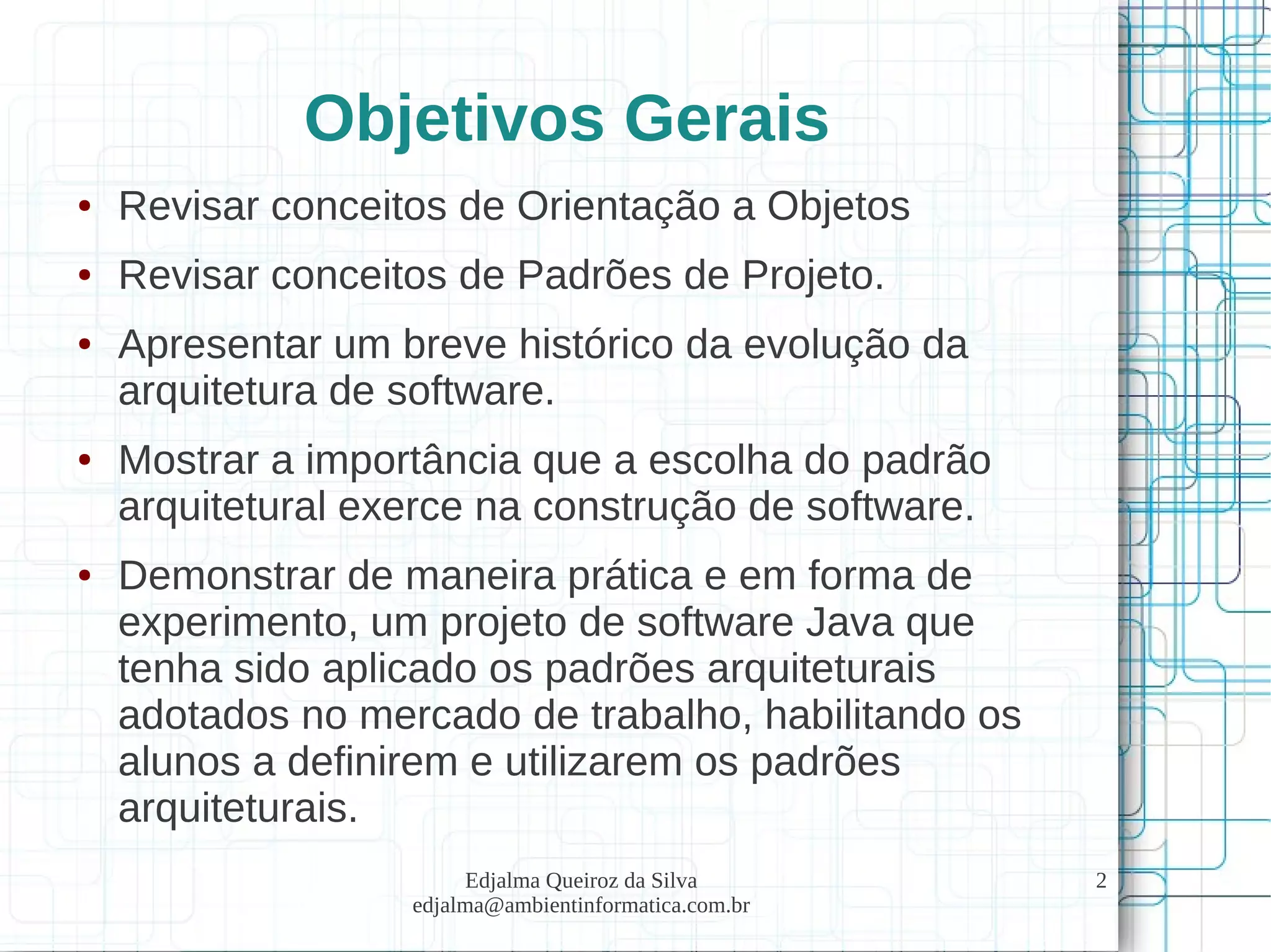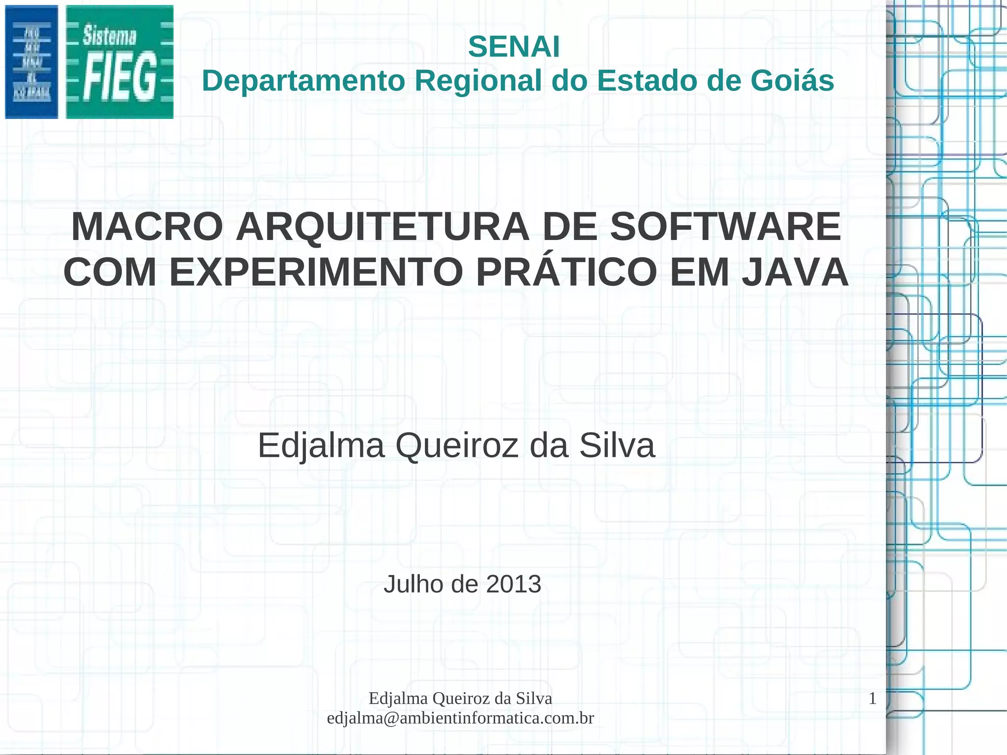 O documento abrange a macro arquitetura de software com foco em Java, revisando conceitos de orientação a objetos e padrões de projeto. Destaca a importância da escolha do padrão arquitetural na construção de software e apresenta um projeto prático que aplica esses conceitos. Além disso, discute frameworks e decisões arquiteturais na integração de sistemas na web.