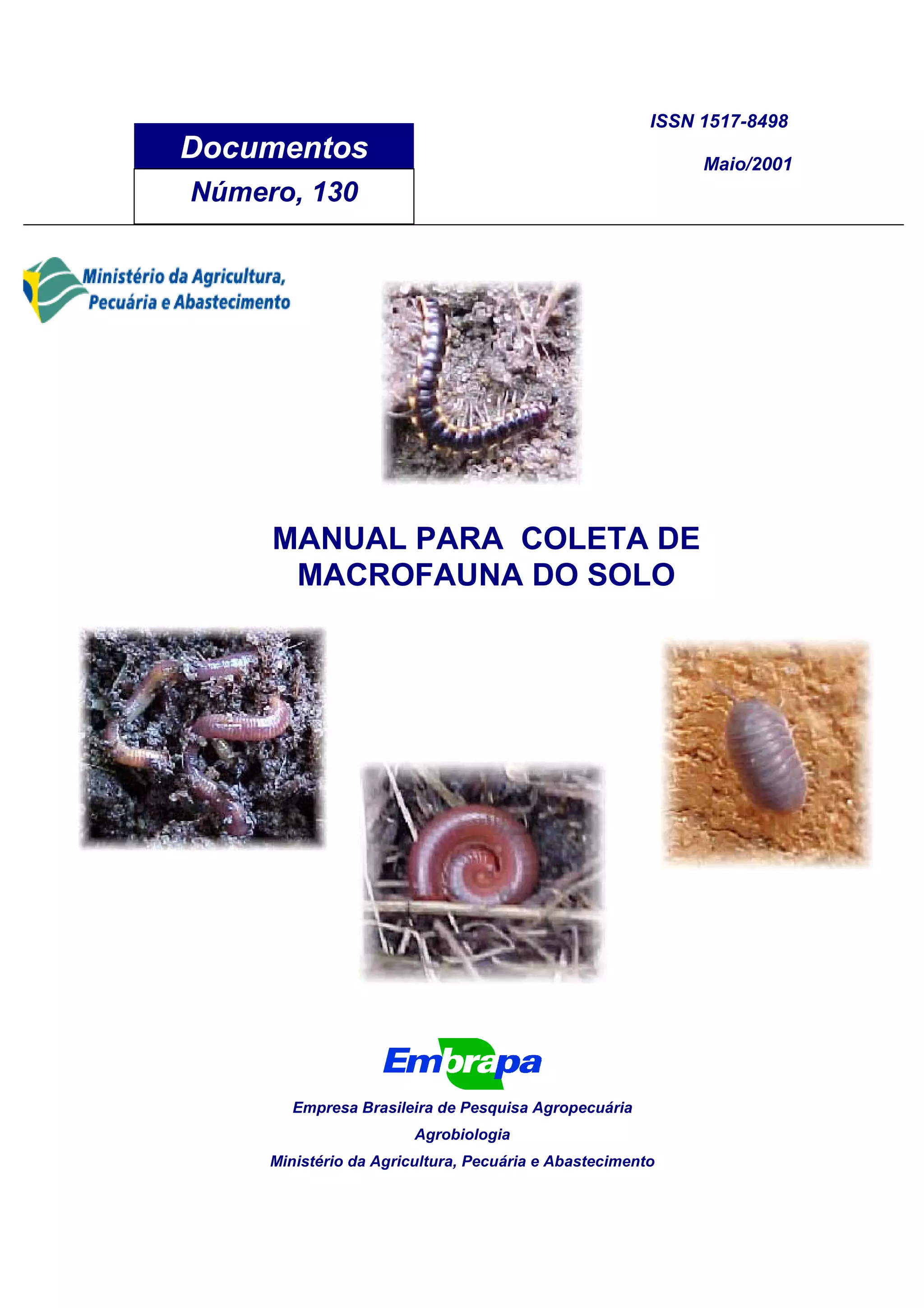 1. O documento fornece instruções sobre como coletar a macrofauna do solo, incluindo animais maiores que 1 cm de comprimento.