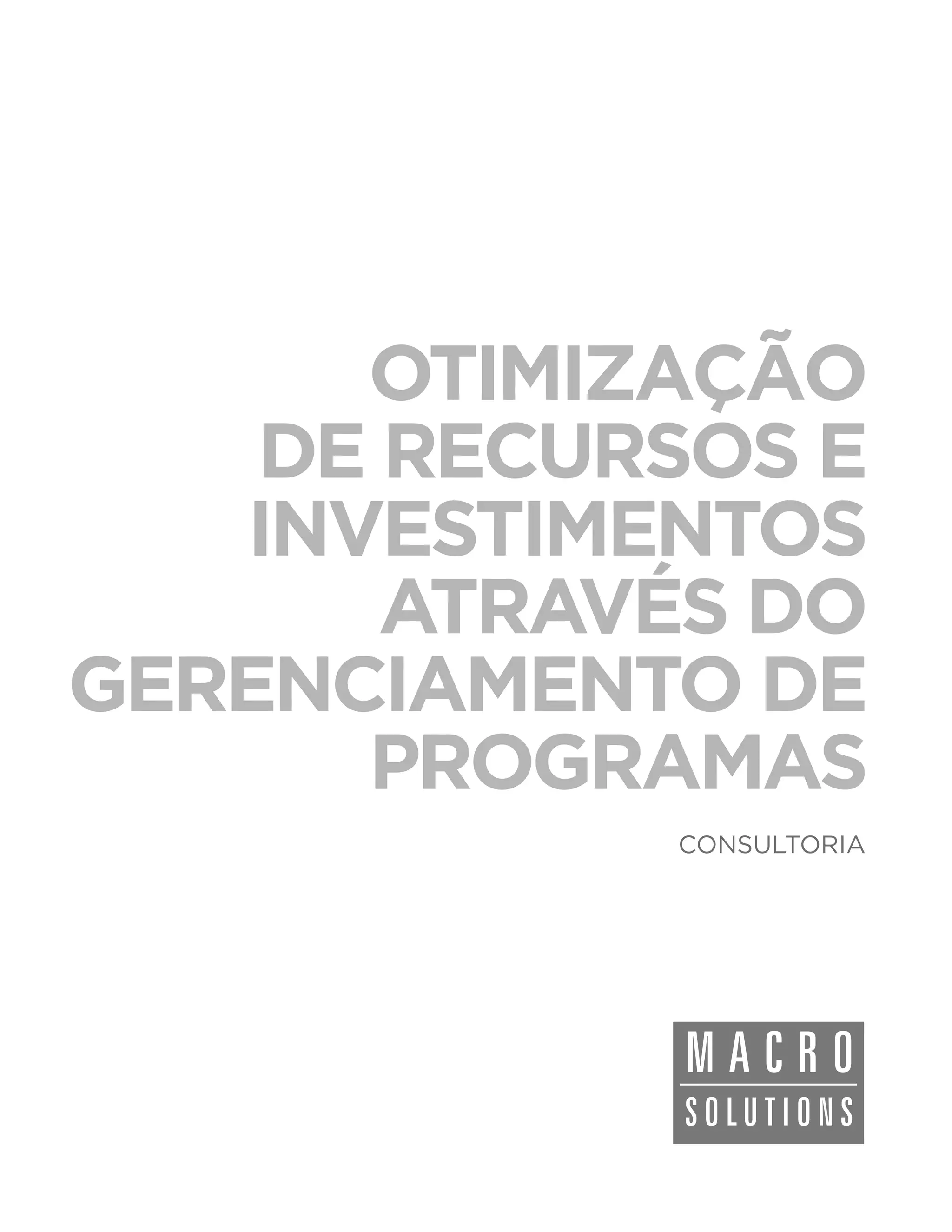 O documento apresenta uma consultoria da macrosolutions focada na otimização de recursos e investimentos por meio do gerenciamento de programas e projetos. Ele aborda problemas como recursos limitados e orçamentos insuficientes, oferecendo estratégias para maximizar benefícios através da gestão integrada. Além disso, detalha a metodologia, escopo dos trabalhos e a experiência da equipe na implementação de práticas efetivas de gerenciamento.