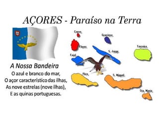 A Região Autónoma da Madeira é composta pela ilha da Madeira, Porto Santo e outras ilhas menores. Possui diversas tradições culturais como o artesanato, a música, as danças e a gastronomia. Os principais pontos de interesse incluem o Funchal, o Monte, Porto Moniz e Santana. Os Açores são constituídos por nove ilhas e possuem paisagens vulcânicas únicas e património cultural rico.