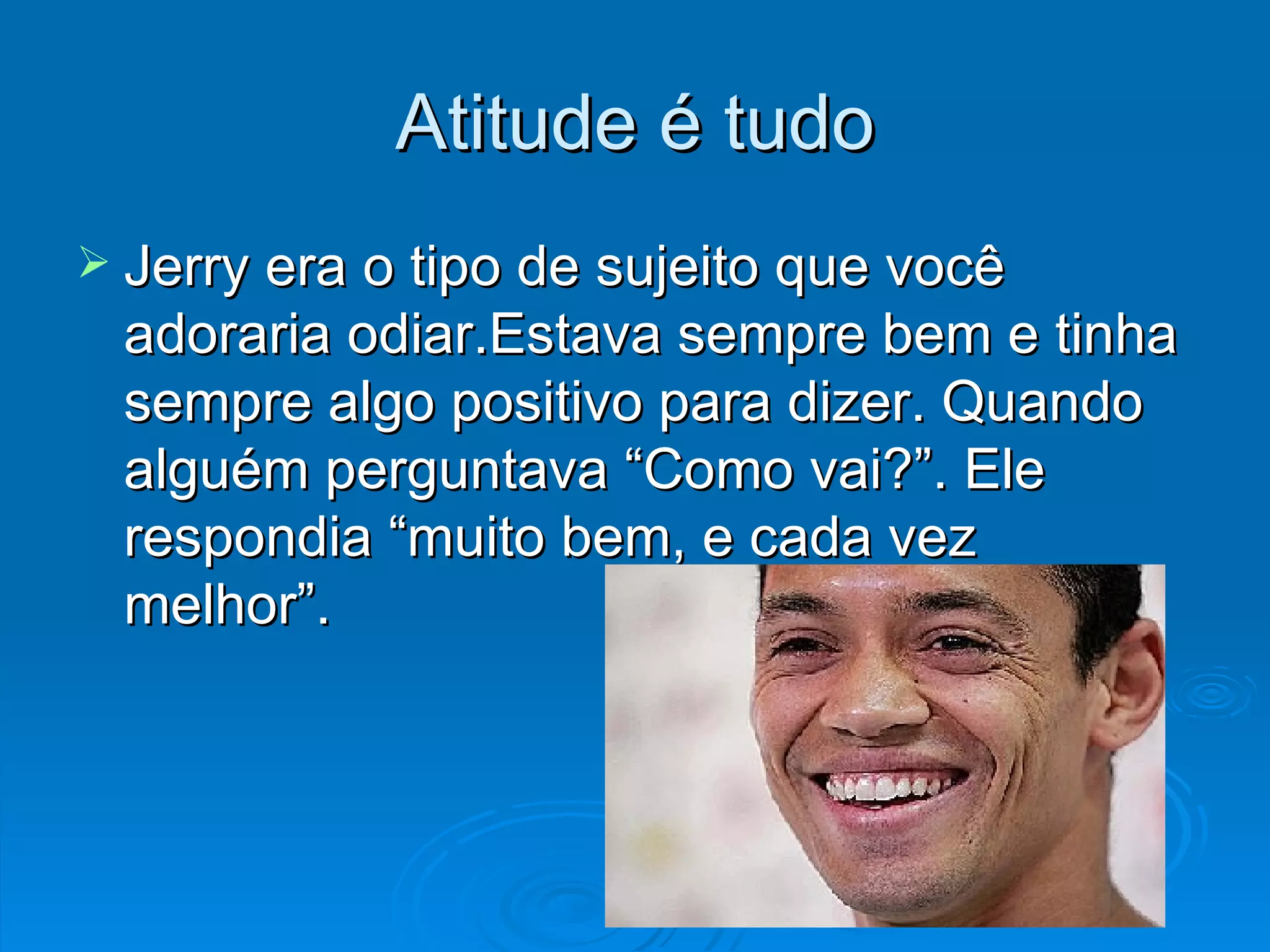 Jerry era um gerente de restaurante sempre positivo que inspirava seus funcionários. Quando foi baleado durante um assalto, Jerry manteve sua atitude positiva, escolhendo viver ao invés de morrer e fazendo piadas com os médicos para manter o moral alto durante uma cirurgia de 18 horas. Isso mostra que nossa atitude pode fazer a diferença mesmo nas piores situações.