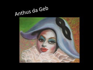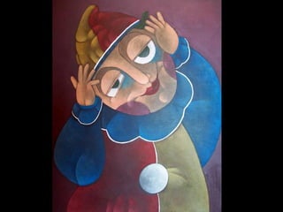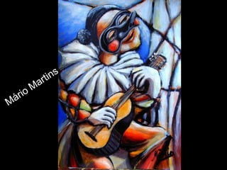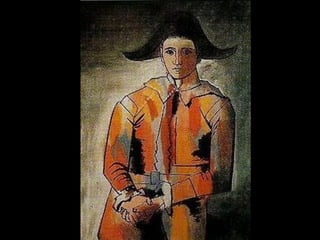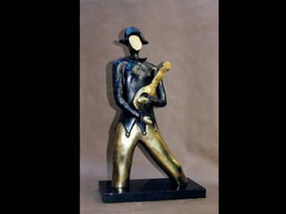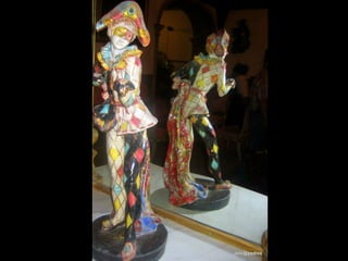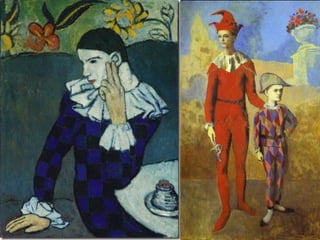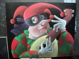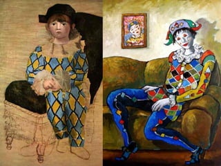 O Arlequim surgiu no teatro grego como personagem da Commedia dell'Arte para divertir o público nos intervalos. A Commedia dell'Arte era uma forma de teatro popular improvisado na Itália do século XV. O documento descreve a origem e evolução do Arlequim através de pinturas e esculturas de artistas como Picasso, Miró e outros.
