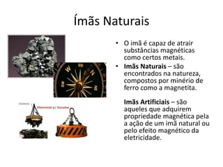1) Ímãs naturais e artificiais, campo magnético e suas propriedades;
