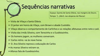 Este capítulo descreve a visita de Vilaça a Santa Olávia, o jantar em sua honra, e as interações entre os personagens. O comportamento de Carlos é observado em contraste com Eusebiozinho. Mais tarde, Vilaça dá informações a Afonso sobre a neta dele, Maria Monforte.