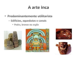O documento descreve a estrutura política do Império Inca, com o Sapa Inca (Imperador) no topo, seguido por um Conselho de Estado, Suyus (Governadores) regionais, e Curacas (Chefes de aldeias) governando as comunidades locais.