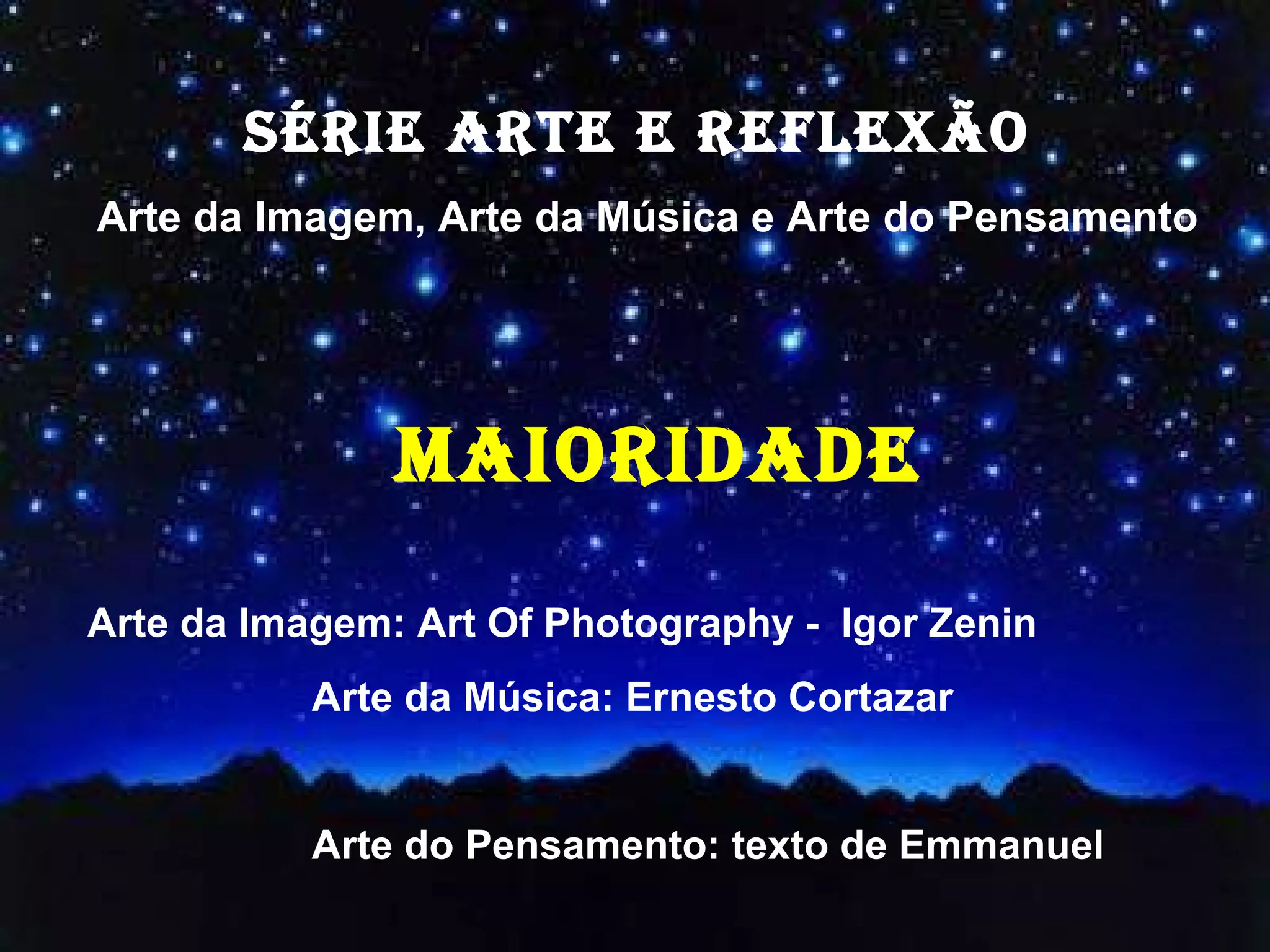 O documento discute a evolução espiritual da humanidade, ainda na infância, e a necessidade de alcançar a maioridade espiritual, não ilusória. Também reflete sobre como aqueles que alcançam maior posição ou status devem lembrar de sua dívida para com os demais e usar seu progresso para beneficiar a coletividade, como ditam os princípios divinos.