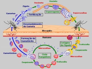 O documento resume as atividades e responsabilidades de um biólogo especializado no controle da malária, incluindo: 1) orientar procedimentos de diagnóstico e tratamento da malária; 2) melhorar o desempenho de microscopistas; 3) melhorar a qualidade da investigação de casos e tratamento de pacientes.