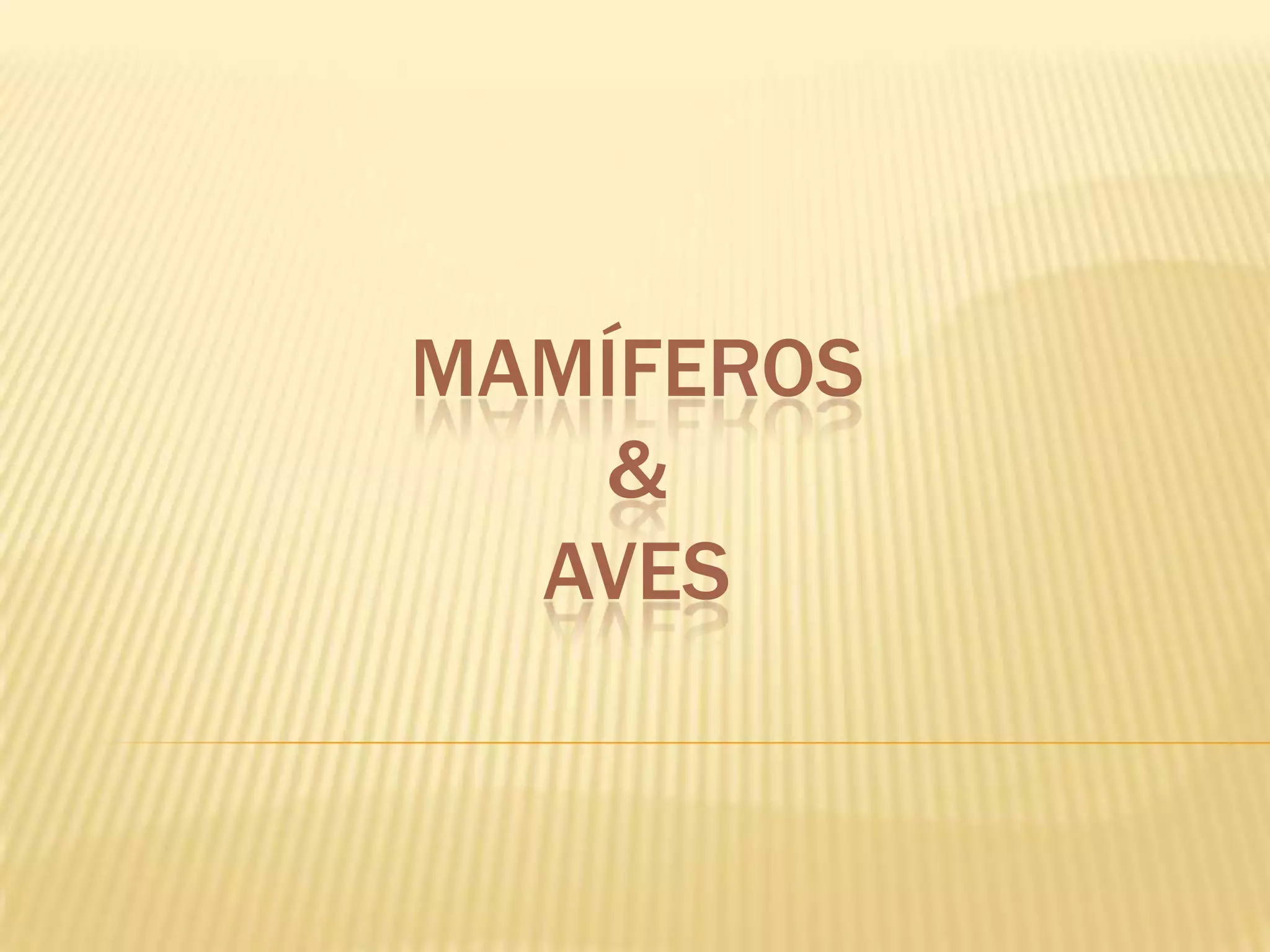 O documento discute as características gerais de mamíferos e aves. Mamíferos possuem glândulas mamárias, pêlos, temperatura corporal constante e dentes variados. Aves mantêm temperatura corporal alta através de mecanismos fisiológicos e possuem asas adaptadas para voo, o que permite buscar alimento e migrar para outras áreas. Ambos os grupos evoluíram a partir de ancestrais répteis e desenvolveram adaptações para termorregulação.