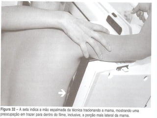O documento fornece instruções sobre como realizar corretamente a incidência médio-lateral oblíqua (MLO) em mamografias. Ele descreve como posicionar o tubo de raios-x, a paciente e a mama para capturar a imagem, incluindo ângulos, alinhamentos e partes do corpo a serem visualizadas. Também fornece dicas e referências para garantir que a imagem seja simétrica e capture adequadamente a estrutura da mama e regiões adjacentes.