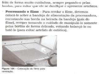 CUIDADOS COM ACÂMARA ESCURA A câmara escura é o local onde os filmes e écrans serão manipulados durante o processo de revelação e recarga dos chassis. Partículas de poeira podem aderir nos écrans causando artefatos na imagem. Problemas com a lanterna de segurança poderão, também, implicar em artefatos nos filmes.