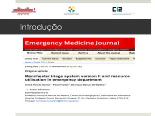 Este estudo explora a capacidade da versão II do Manchester Triage System (MTS) de estratificar o risco de internamento e morte, e prever o consumo de recursos no departamento de emergência. Os resultados mostraram que a versão II do MTS melhorou a discriminação do risco clínico e a predição do consumo de exames como laboratório e eletrocardiograma. A versão II também forneceu melhores resultados na comparação entre medicina e cirurgia.