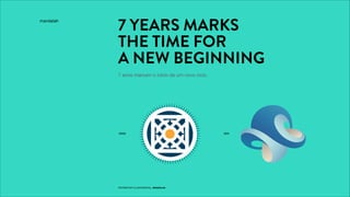 O documento descreve a nova marca de uma empresa chamada Mandalah, resultado de um esforço criativo conjunto entre a Mandalah e outra empresa. A nova marca reflete os valores da empresa de unir lucro e propósito por meio de uma tipografia e cor únicas escolhidas para conectar o coração com a linguagem.