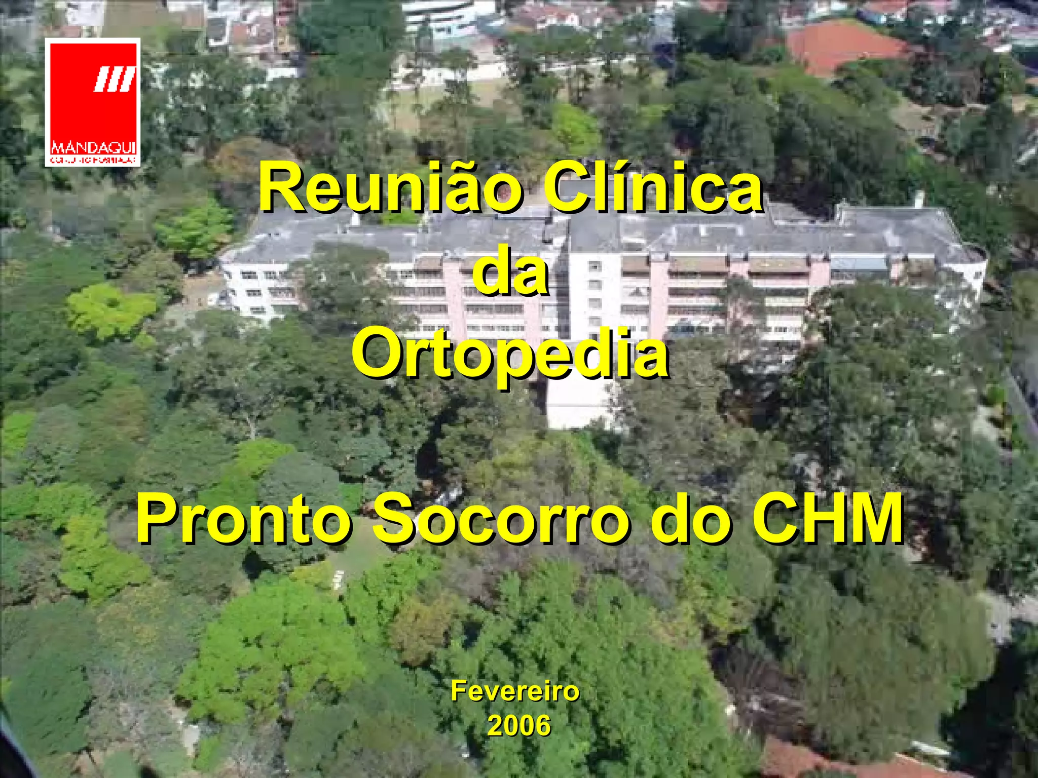 O documento descreve as reuniões clínicas da ortopedia no pronto-socorro do hospital em 2006. A primeira reunião discutiu a história da ortopedia. Posteriormente, reuniões trataram de fraturas expostas, traumatismos da mão e coluna vertebral. A última pergunta se o que pode ser feito pelo hospital.