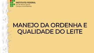O documento aborda a importância do manejo adequado da ordenha e da saúde das vacas, destacando a relação entre condições de saúde e qualidade do leite. Também apresenta diferentes tipos de técnicas de ordenha, diagnósticos de mastite e procedimentos de desinfecção para prevenção de infecções. Finalmente, enfatiza a necessidade de limpeza e desinfecção adequada dos equipamentos para garantir a qualidade e segurança do leite produzido.
