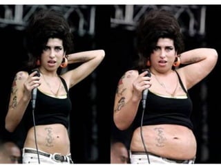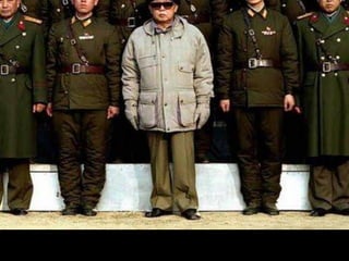 O documento descreve como governos autoritários como a União Soviética de Stalin e a Coreia do Norte manipularam fotografias para fins de propaganda, removendo figuras políticas desafetas ou modificando imagens para exaltar líderes. A manipulação fotográfica serviu para apagar oponentes de Stalin da história e foi amplamente usada na época soviética.