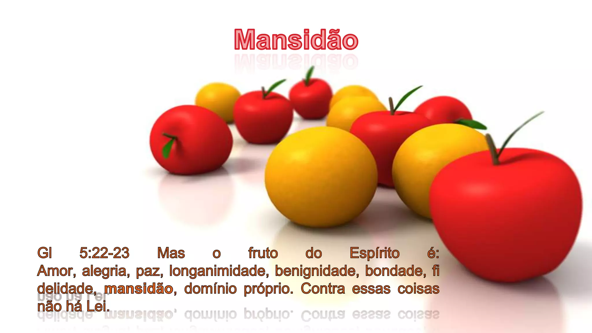 A mansidão é a disposição de espírito de aceitar a forma de Deus lidar conosco como a melhor, sem disputar ou resistir. É oposta à arrogância e egoísmo e origina-se da confiança em Deus e em seu controle sobre as situações. A pessoa mansa não se centra no próprio ego.