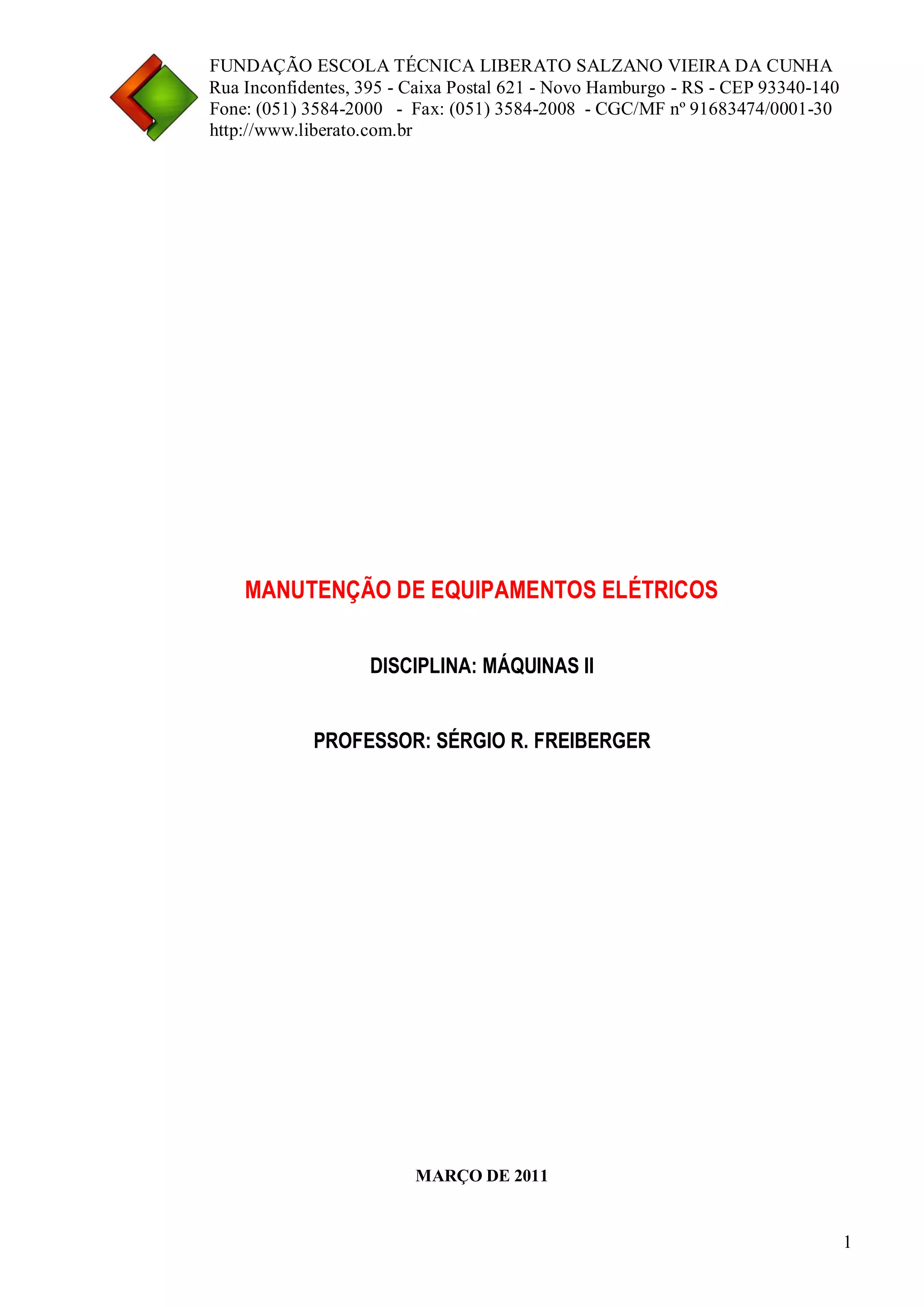 O documento discute os conceitos e práticas de manutenção de equipamentos elétricos, incluindo tipos de manutenção, priorização de acordo com o processo de fabricação, uso de equipamentos reservas, identificação, efeito da carga, e segurança. É focado em garantir a confiabilidade dos equipamentos elétricos e a continuidade dos processos industriais.