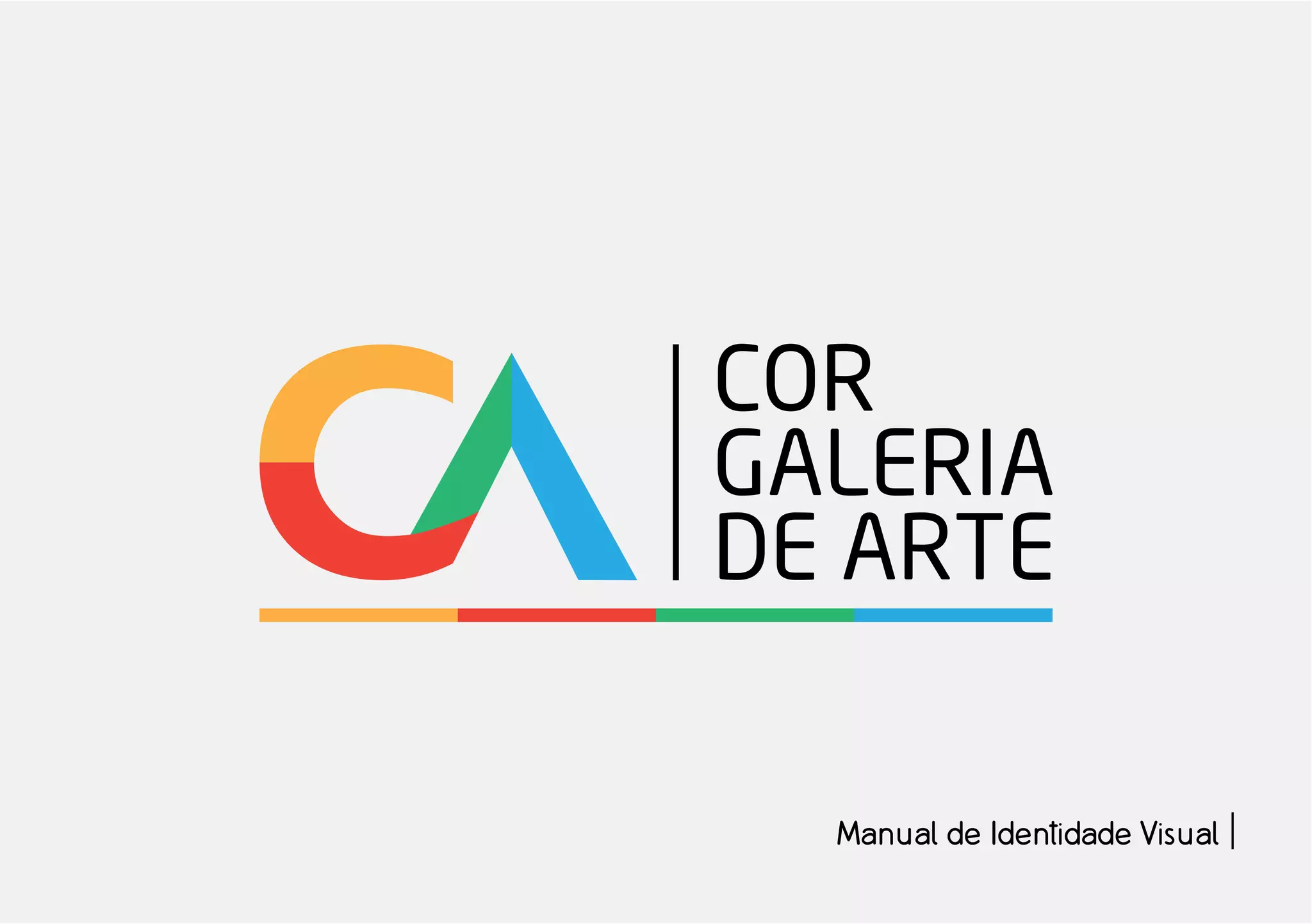 Este manual apresenta as diretrizes para a identidade visual da Cor Galeria de Arte, incluindo suas cores, logotipos, tipografias, regras de uso e aplicações em diferentes materiais de comunicação e marketing como cartões de visita, envelopes, catálogos e uniformes.